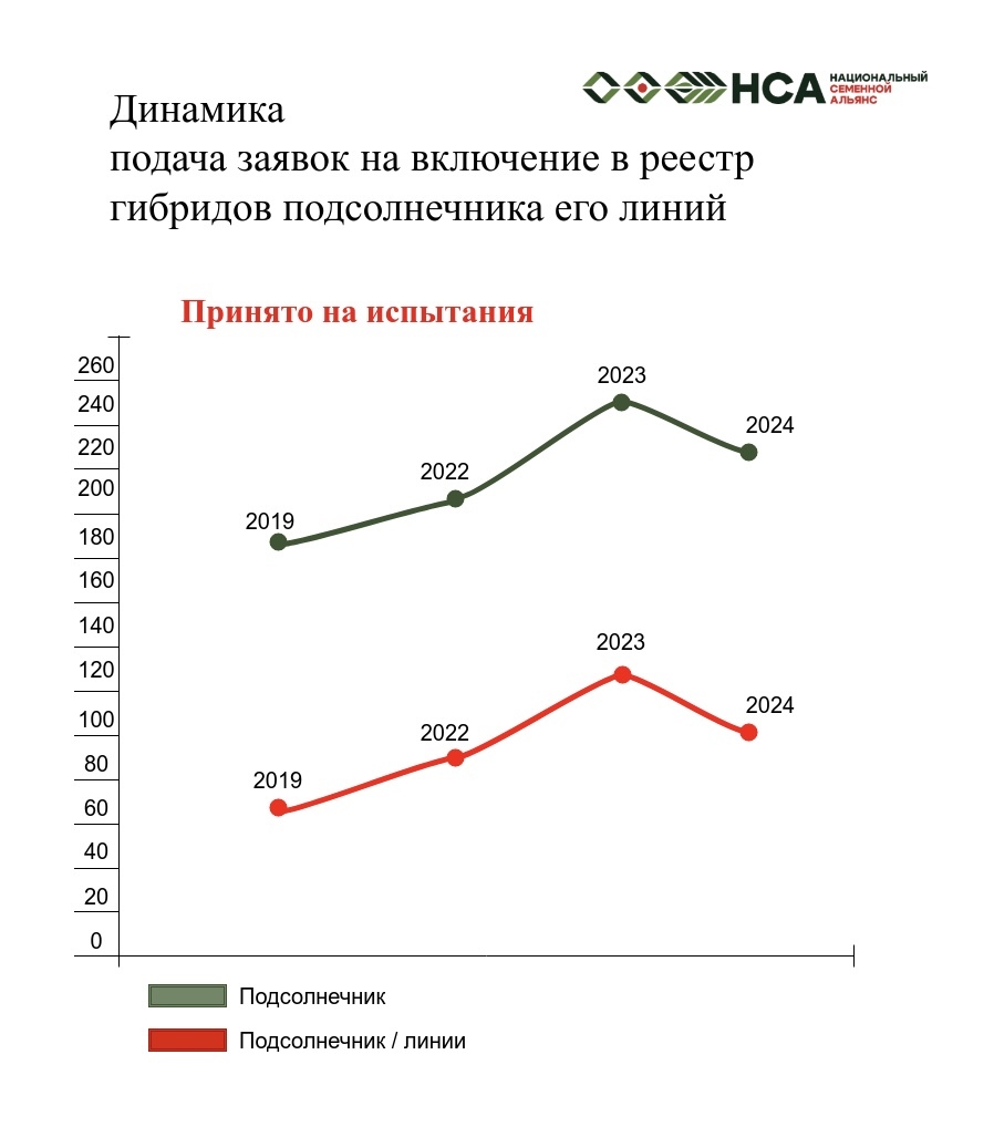 Нужно подчеркнуть, что в 2024 году количество поданных заявок на испытания линий снизилось, но именно в этом году 18 компаний, физических лиц и ИП, ранее никогда не занимавшиеся селекцией подали на регистрацию более 20 селекционных достижений. Можно с высокой долей вероятности предположить, что эти гибриды созданы не ими. Этот факт красноречиво говорит о масштабах проблемы.