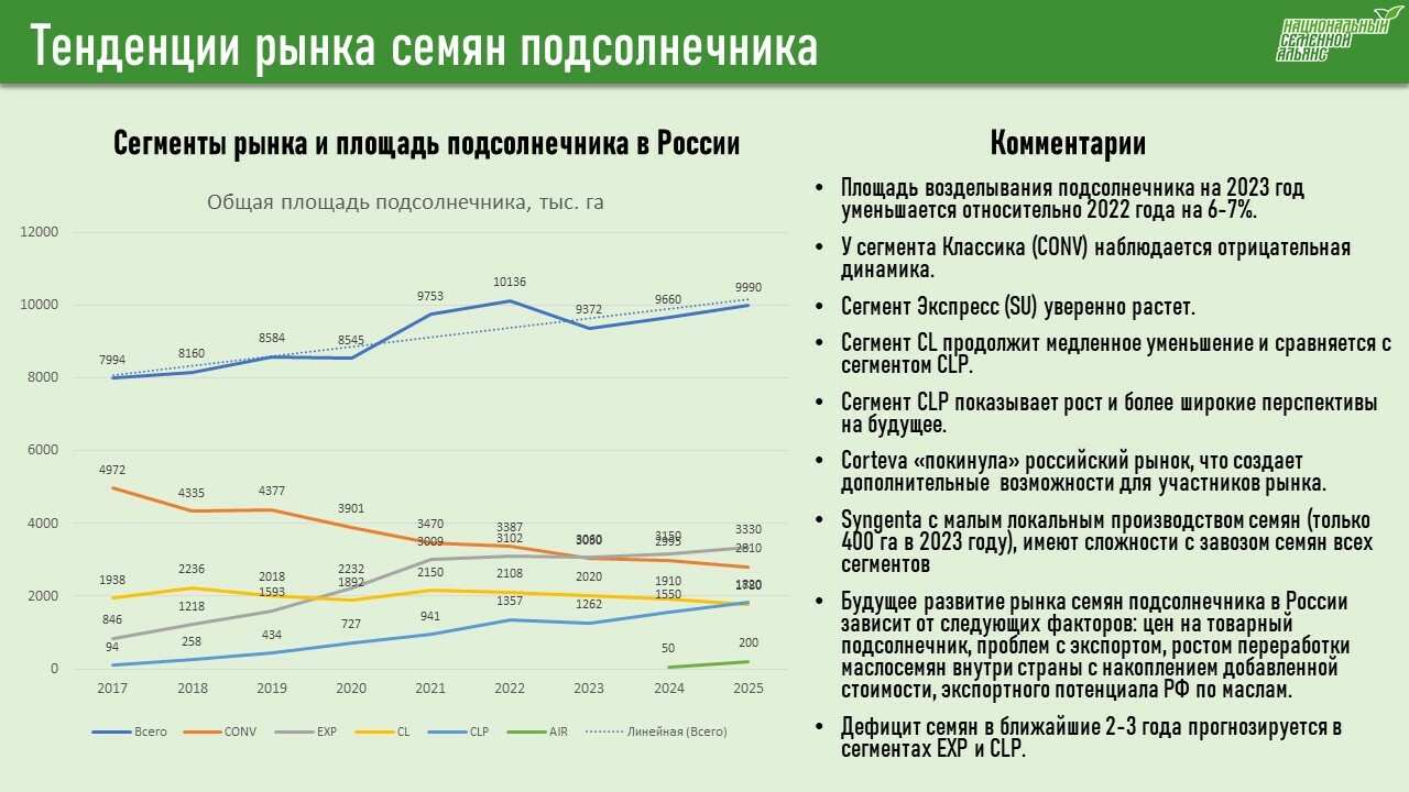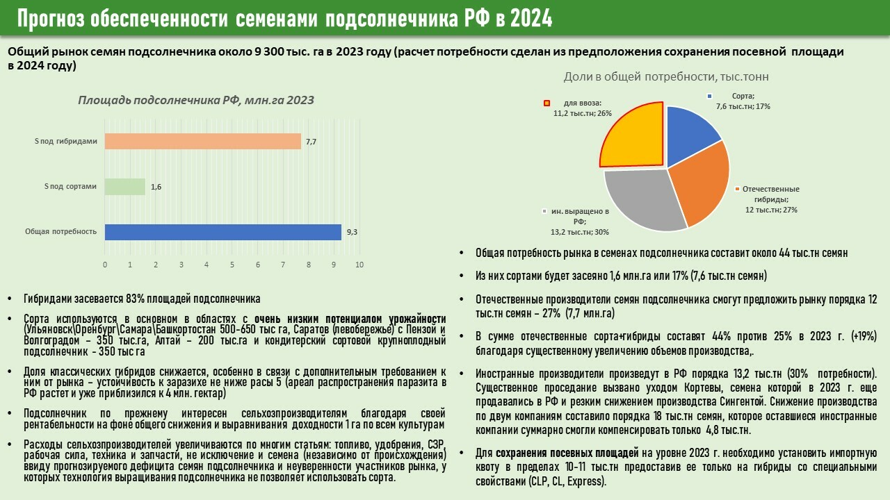 Прогноз обеспеченности семенами подсолнечника АПК РФ *по данным комитета иностранных компаний